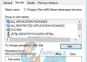A list of different accounts should appear and you should select the one with the name of your computer and not the administrator one. After you choose your computer’s name click “OK” and tick the box that says “Full Control”. Click OK until you exit these boxes and your game should proceed with updating or you could play straight away. Basically, what happened is that a file didn’t allow to be edited with your current logged-in account and it needed to be unlocked in a way to add necessary permissions for Steam to install it.