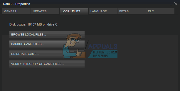 Your second option is to again locate the file and to simply rename or delete it. Be sure to make a backup copy just in case. After that, open Steam >> Library and right-click on the game which has been causing issues. Select Properties and navigate to the Local Files tab. Select Verify Integrity of Game Files and Steam will locate the file you deleted or renamed and redownload it without an issue.