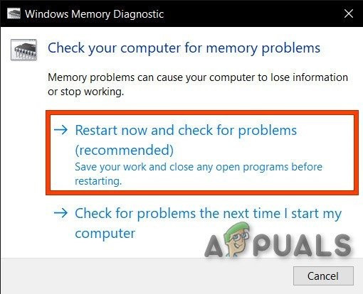 Windows Memory Diagnostic in Windows Search Box - Following two options will be shown in the Diagnostic Tool: