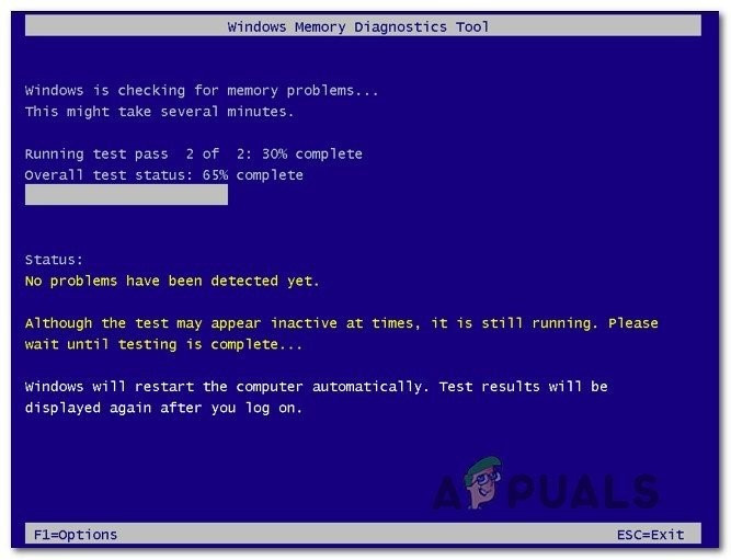 - At the next startup, the system will boot into the Windows Memory Diagnostic Tool Environment. Wait patiently for the process to complete.