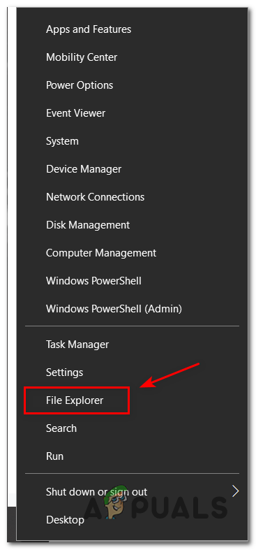 - Right-click on the Start menu in the bottom left corner, and click on File Explorer.