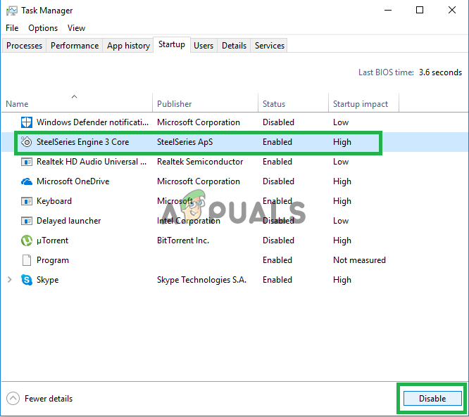 Clicking on the “Open Task Manager” option - Click on the “Disable” button to disable it from starting automatically at startup.