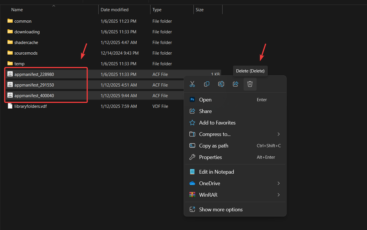 - Once deleted, launch Steam to recreate the appmanifest files and then verify if the error is resolved.
