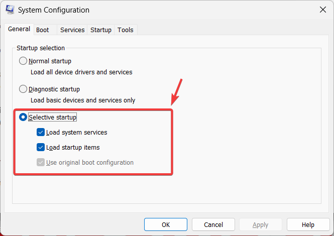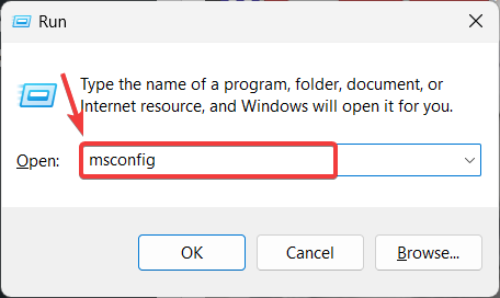 - Type msconfig in the input box and click OK. This opens the System Configuration window.