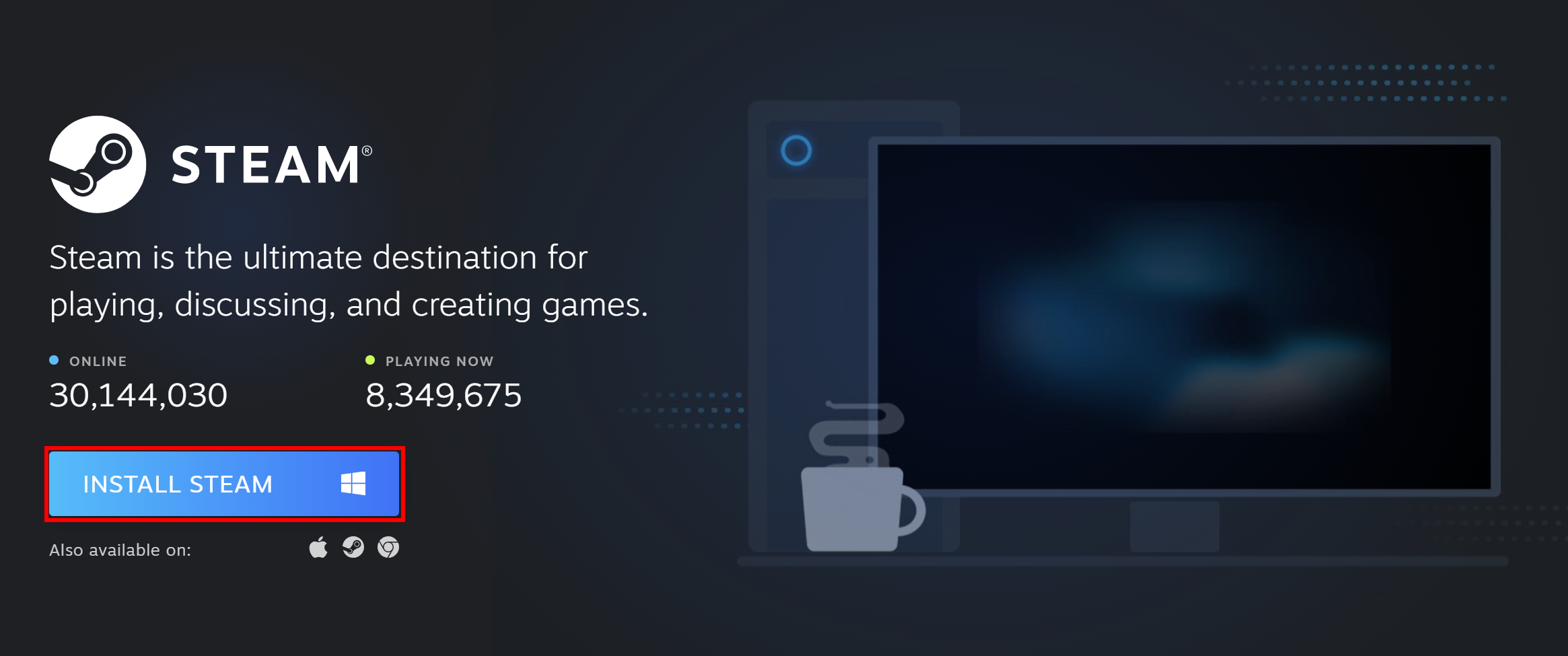 - Click on Install Steam to download the installer.