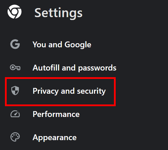 - From the left-hand menu, click on Privacy and security.