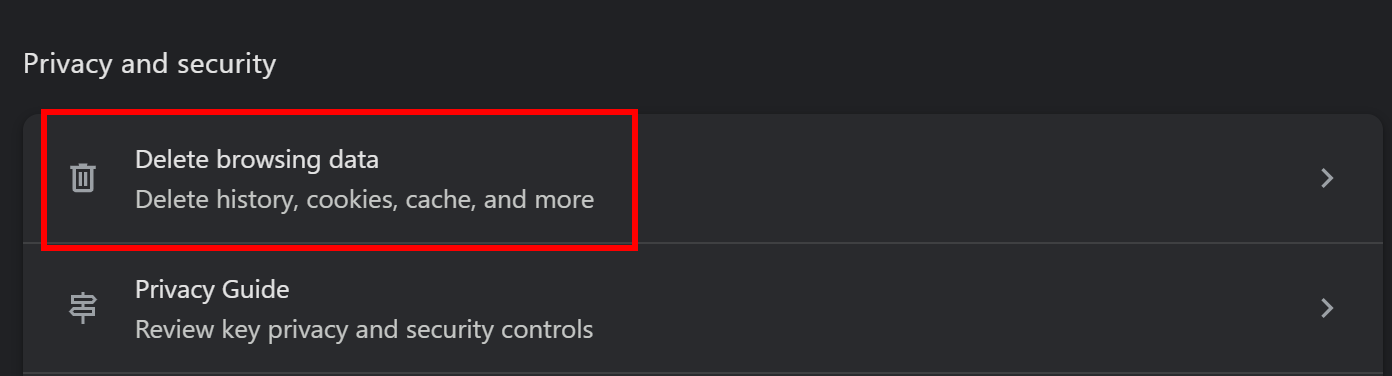 - Under the Privacy and security section, click on Clear browsing data.