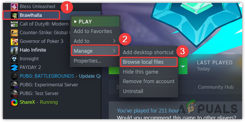 - To open the game directory, right-click the game from your Steam library, hover Manage and click Browse local files. Now configure the game executable file to open with administrator permissions.