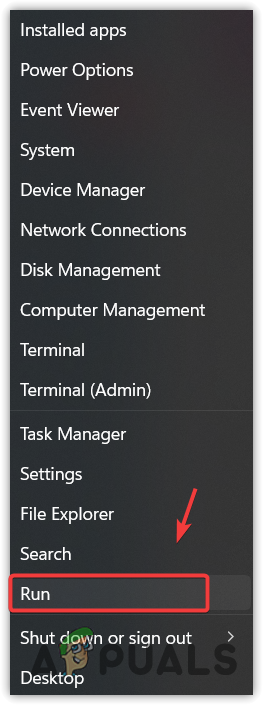- Right-click the Start Menu and select Run to open Run Window.