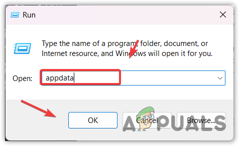 - Enter appdata and hit Enter to open the folder.