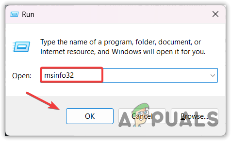 - Now enter the msinfo32 in the search box and click OK.