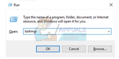 - In the dialogue box type “taskmgr” to bring up the task manager.