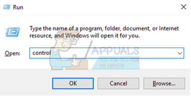 - Press Windows + R button to bring up the Run application. In the dialogue box type “control”. This will open your computer’s control panel in front of you.