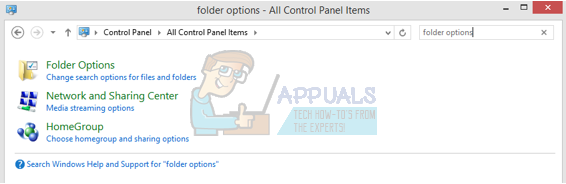 - In the control panel, search for “Folder Options” in the dialogue box located in the upper right corner.