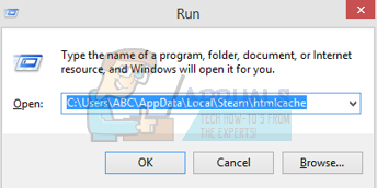 - In the dialogue box write “C:\Users\<Username>\AppData\Local\Steam\htmlcache’’. Here the <Username> is your windows account username.