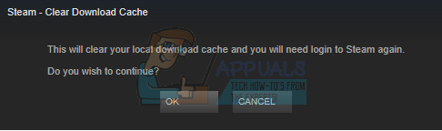 - After you press “Ok”, a window will pop up to confirm your action. Please note that after clearing the cache, Steam will prompt you to re-login using your credentials. Only perform this action if you have your Steam username and password at hand.