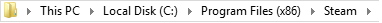 In the dialogue box write “C:\Program Files (x86)\Steam”.