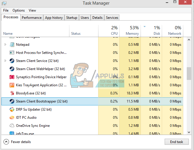 - End all Steam related processes starting from the process ‘Steam Client Bootstrapper’.
