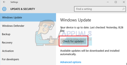 - Here you will find “Check for updates” in the “Windows Update” tab. Now windows will check for any available updates and perform them after downloading.