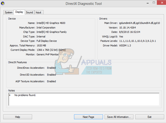 - In the dialogue box type “dxdiag”. This will open up DirectX diagnostic tool. It will list all the available hardware that is installed on your PC along with the versions of the software.