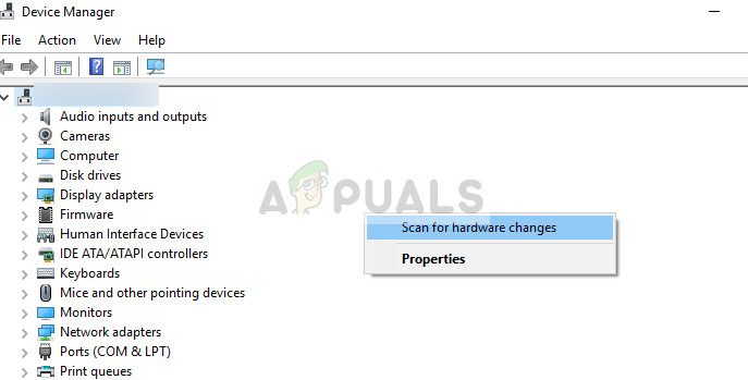 - Restart your computer and try launching the driver. If it doesn’t work, navigate back to the device manager, right-click on an empty white space and click “Scan for hardware changes”.