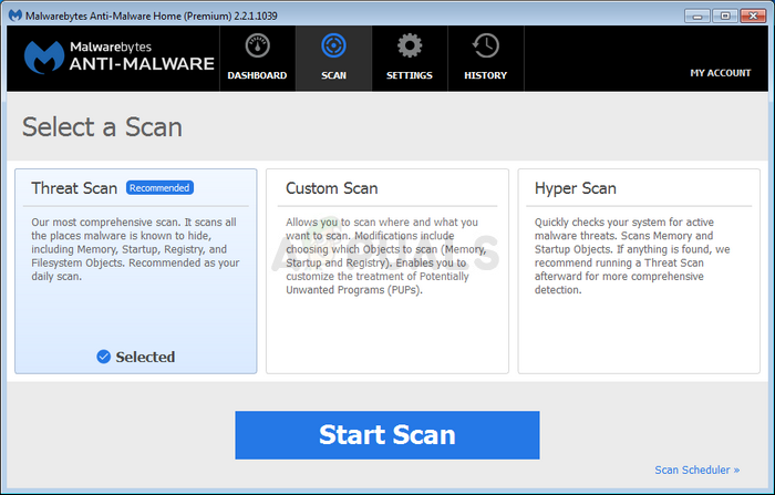 The best bet is to get rid of malware by using Malwarebytes Anti-Malware which is a great scanner with a free trial version. Fortunately, you won’t need the program after you solve this issue so make sure you download the free version from here.