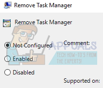 - Now set the setting as Enabled and click on Apply. Now select Not Configured or Disabled and press Apply. The final value is Not Configured/Disabled. We selected Enabled and applied changes so the group policy can overrun any settings done by any external application or malware. Press Ok to save changes and exit. You might need to restart your computer in order for the changes to take place.