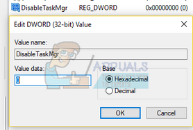 - Locate “DisableTaskmgr” from the list of items present. Double click it and enter the value as 0. Press Ok.