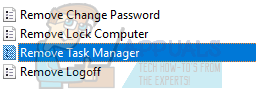 - On the right side of the screen, you will see an entry named as “Remove Task Manager”. Double-click it to open its settings.