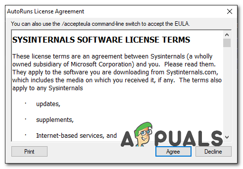- Once you open Autoruns it should give you a license agreement window. Simply press “Agree”.