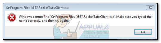 Perhaps the biggest giveaway that the taskeng.exe is actually infected is the error message. If you see a blank taskeng.exe popup accompanied by an error message similar to “Windows cannot find *executable file”, there’s a high chance that you’re dealing with a virus infection. You can be even more sure of this if you see any mention of RocketTab, GeniusBox or MyWebSearch in the error message.