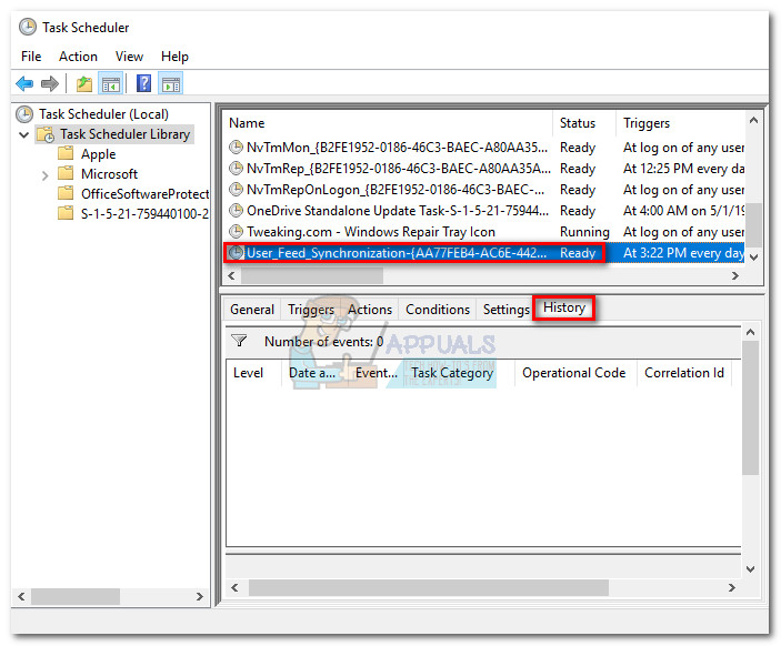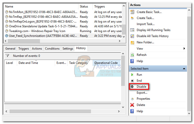 Some users have successfully removed the random taskeng.exe pop after disabling a hidden task in Task Scheduler. As it turns out, there’s a hidden task called User_Feed_Syncronization that is often responsible for this issue. Follow the instructions below to disable the User_Feed_Syncronization from Task Scheduler: