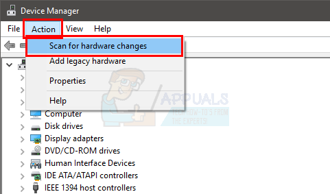 - At the top of this window, among the buttons; find and click the Scan for hardware changes