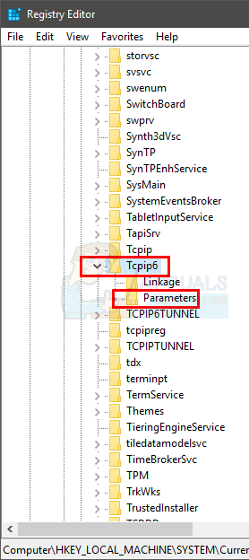 - Now, navigate to this location: HKEY_LOCAL_MACHINE\SYSTEM\CurrentControlSet\Services\Tcpip6\Parameters. If you don’t know how to navigate to this address then follow the steps given below