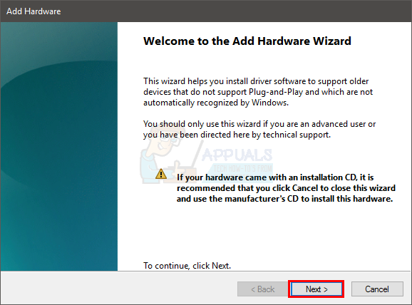 - This will open the Add Hardware