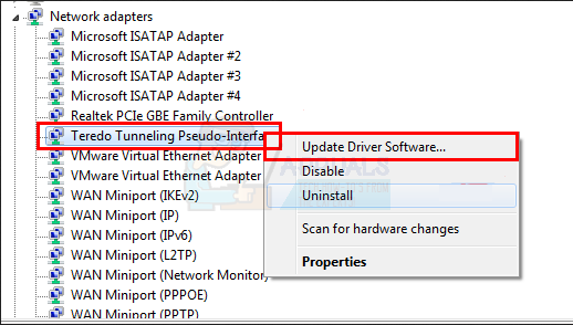 Since we know that the problem is related to the driver of the device, it can be because of an outdated driver. May be you reinstalled your operating system and now the current Microsoft Teredo Tunneling Adapter driver is outdated. You can easily update the driver by doing the following: