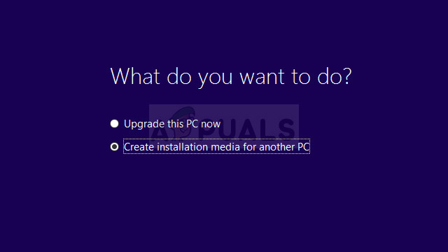 - Select the Create installation media (USB flash drive, DVD, or ISO file) for another PC option from the initial screen.