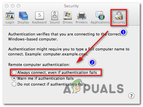 - Guest’s Remote computer authentication is not set to Always connect – This is the most popular culprit when it comes to this particular error message. Remote Desktop Connection is will refuse to connect if a single security factor fails during the authentication stage. In this case, you can circumvent the issue by modifying the guest’s security preferences to connect even if the authentication stage fails.