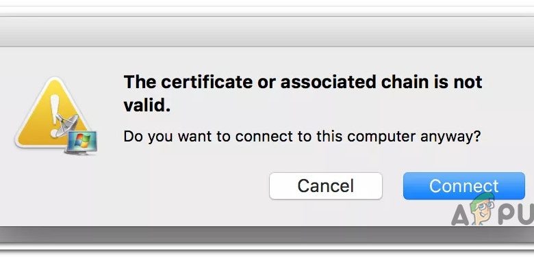 Several users are reporting that they are unable to connect to a different machine using Remote Desktop Connection. Affected users report that they get the following warning: “The certificate or associated chain is not valid”. In most cases, the issue is reported to occur if the user tries to use the Remote Desktop Connection as a Guest from a Mac OS computer.