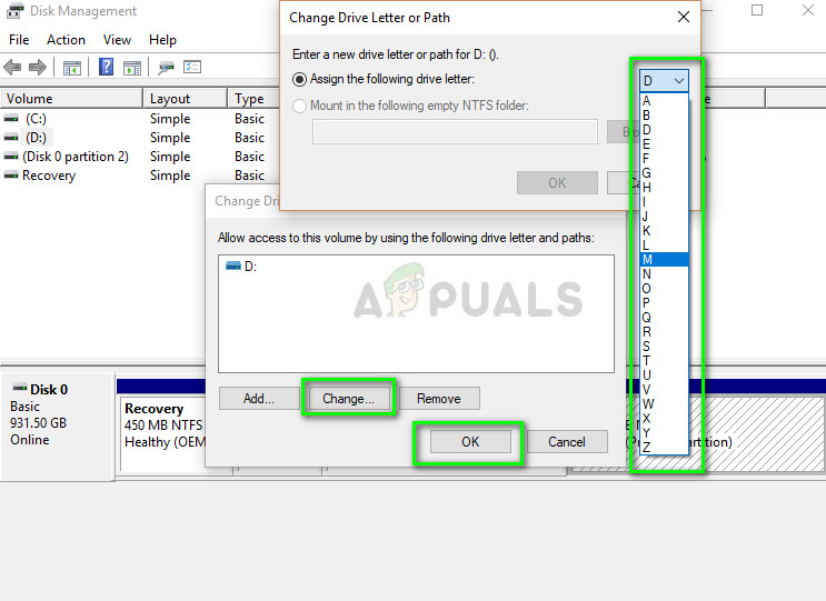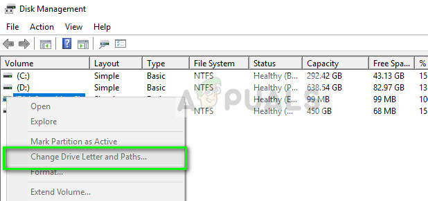 If the error doesn’t go away still, we can try changing the drive letter. Each drive letter is identified by a unique drive letter which also defines the navigation path from the main system. There are several cases where the drive letter is conflicting with another one which is already reserved by the system. We will try changing the drive letter and check if this solves the issue.