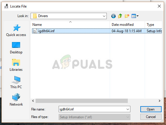 We will be using the device manager to force install the driver. You will have to download the .zip file from Intel’s official website and store it in an accessible location so you can access it again. Make sure that your important data is backed up and you are logged in as an administrator. Select the “igdlh64.inf” file if you’re using a 64-bit version of Windows, or select “igdlh32.inf” file if you’re using a 32-bit version of Windows.