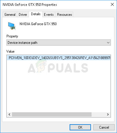 - Navigate to the Details tab in the Properties window and left-click the menu under the Property text. Choose the Device instance path option and, under Value, you should see a text which should look something like this:
