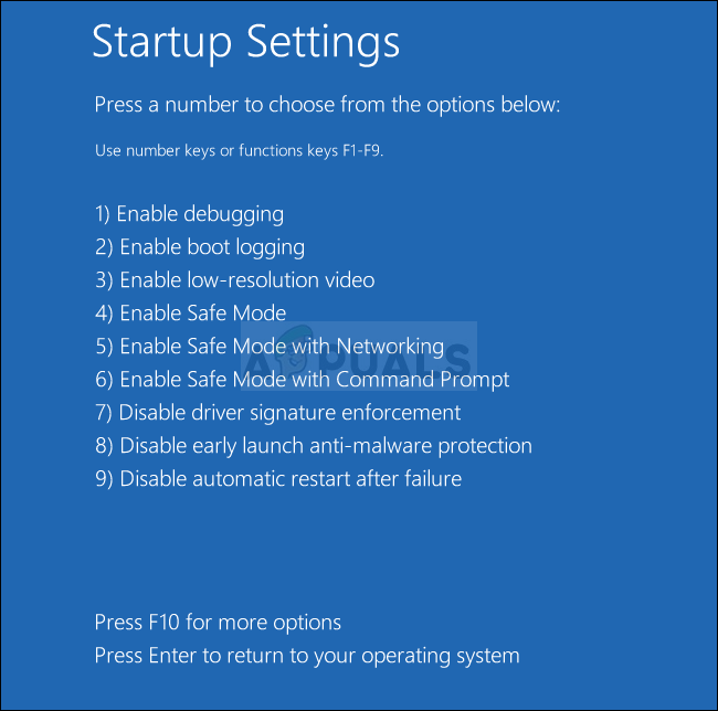 - Under the Advanced options screen, click on Startup Settings which will open a list of available startup options for you.