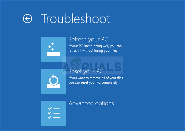 - You will be able to see three different options: Refresh your PC, Reset your PC, and Advanced options. Click on the Advanced options button.