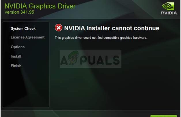 NVIDIA Installer cannot continue – the graphics driver could not find compatible graphics hardware