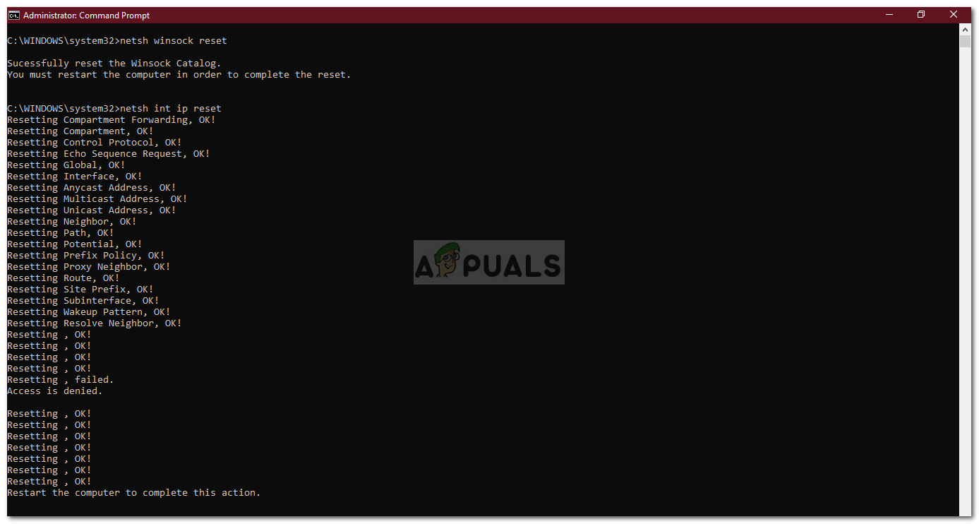 Resetting Winsock and TCP/IP - If you get the Access Denied message, turn off your third-party antivirus and try again.