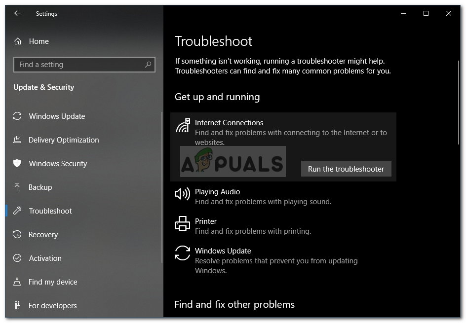 Running Internet Connections Troubleshooter - Wait for it to complete.