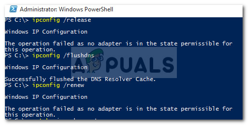 The error ‘This operation failed as no adapter is in the state permissible for this operation’ often occurs when you have manually set a static IP address. Users have reported that they are not able to connect to any network and all they see is a red cross symbol on the network icon on the left-hand side of the taskbar. Afterward, upon trying to release the IP configuration and renew the address using the command prompt or Windows Powershell, they are presented with the said error.