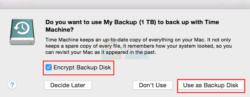 Note: If you don’t see a dialog asking you to backup the disk using Time Machine, follow the instructions below