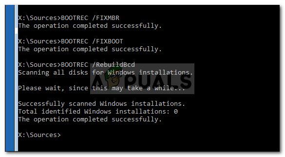 Rebuilding Windows BCD File - Once the process has finished, restart your machine and check if your system loads up.